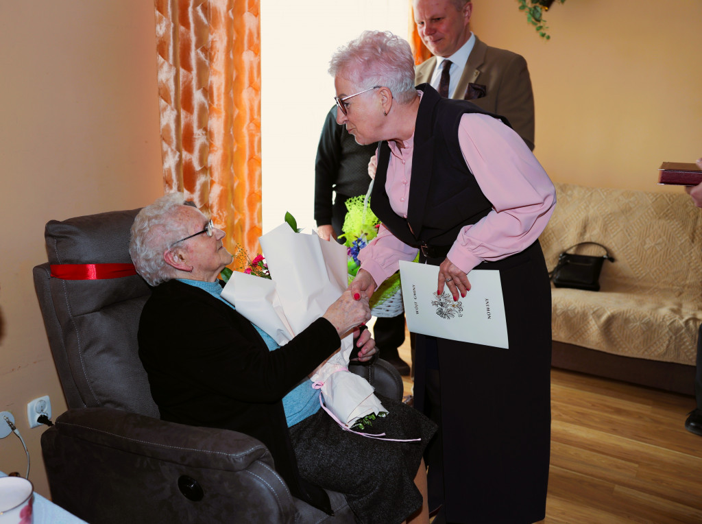 Setna rocznica urodzin to moment magiczny. Z tej wyjątkowej okazji, w gminie Nowiny odbyła się uroczystość, podczas której marszałek Renata Janik odwiedziła jubilatkę, panią Michalinę Skulską.