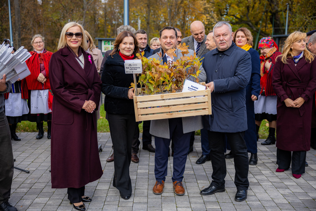 Uroczystego zasadzenia Dębu Tysiąclecia, które ma przypominać o naszej historii i wspólnych wartościach dokonali: marszałek Renata Janik wraz z poseł Anną Krupką, senatorem Krzysztofem Słoniem, wicemarszałkiem województwa świętokrzyskiego Markiem Bogusławskim, marszałkiem Władysławem Ortylem, członkiem Zarządu Jarosławem Kwaskiem, wiceprzewodniczącym Sejmiku Województwa Małopolskiego Wojciechem Skruchem, przedstawicielami Lasów Państwowych Marcinem Polakiem zastępca dyrektora Generalnego Lasów Państwowych ds. Ekonomicznych i Romanem Wróblewskim– z-ca dyr. ds. gospodarki leśnej Regionalnej Dyrekcji Lasów Państwowych w Radomiu oraz wójtem Zagnańska Wojciechem Ślefarskim.