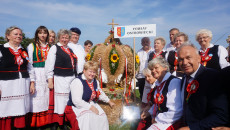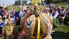A potem przyszła pora na tradycyjne dożynkowe obrzędy: prezentację barwnych wieńców oraz ich „odśpiewanie” i obtańczenie przez Koła Gospodyń Wiejskich oraz zespoły ludowe wraz z delegacjami poszczególnych powiatów. Starostowie tegorocznych dożynek: Anna Chabior z Sudołu w gm. Jędrzejów i Tomasz Ślęzak z Ewiny w gm. Włoszczowa wręczyli Gospodarzowi Dożynek – Marszałkowi Województwa – bochen chleba upieczonego z mąki pochodzącej z tegorocznych zbiorów, którym potem wszystkich częstowali.