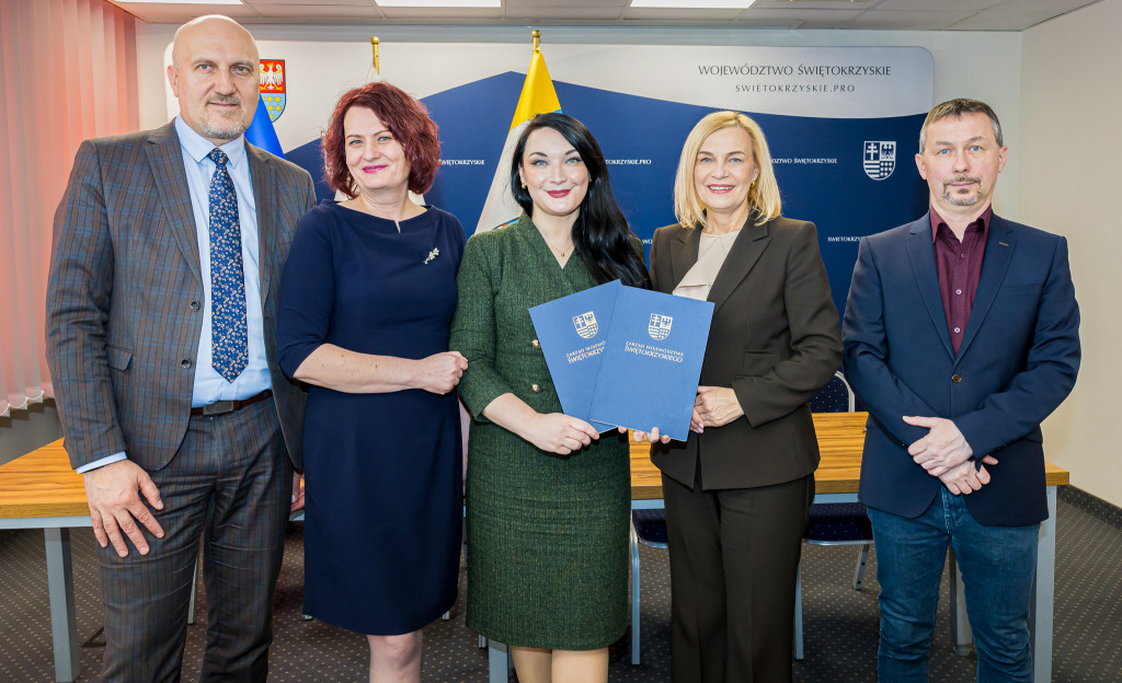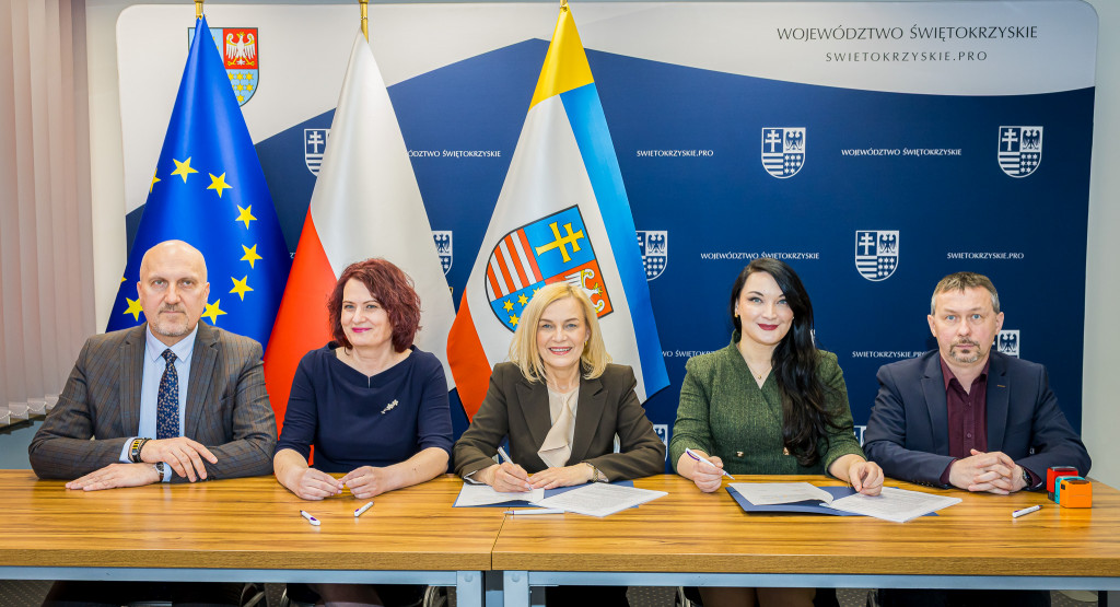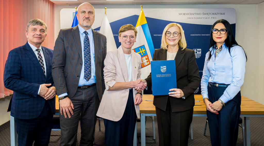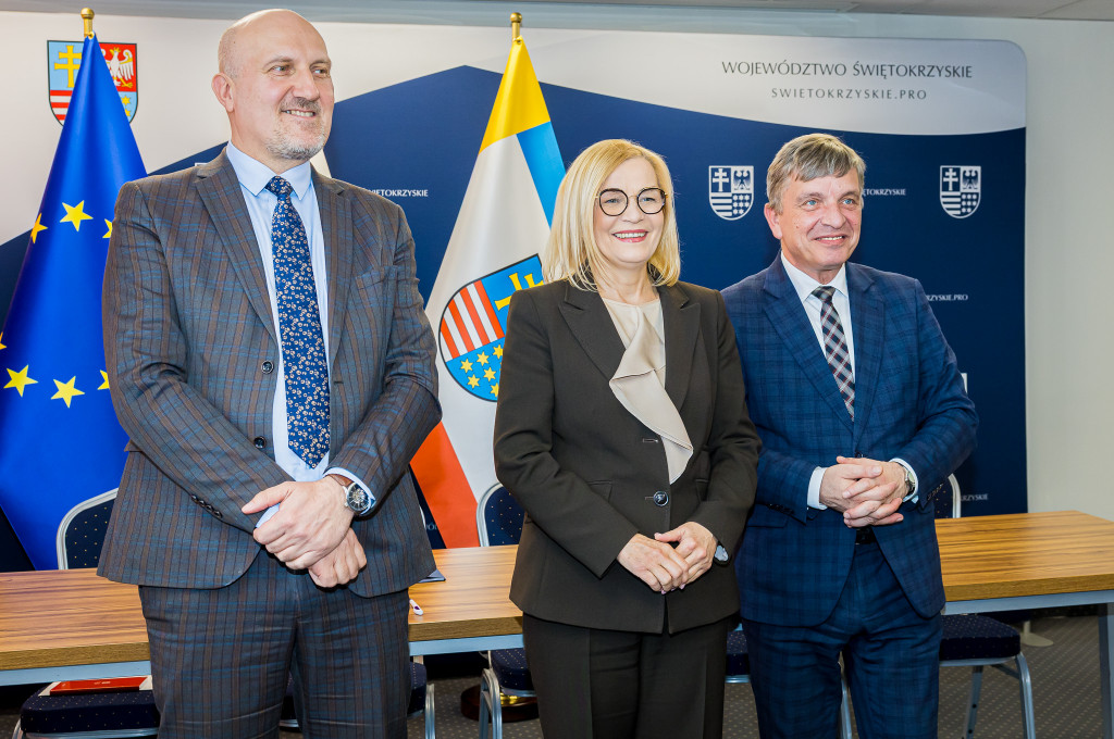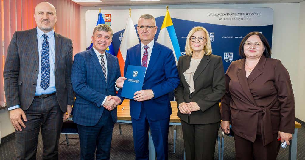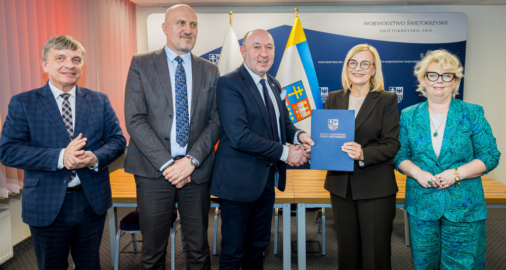 W naszym Urzędzie podpisano dzisiaj pięć umów na dofinansowanie projektów w ramach programu Fundusze Europejskie dla Świętokrzyskiego 2021-2027. Ze strony Zarządu Województwa podpisy złożyli marszałek Renata Janik, wicemarszałek Grzegorz Socha. Łączna kwota wsparcia, która trafi do czterech samorządów, wynosi ponad 15 mln 600 tys. zł. Środki te pochodzą z Unii Europejskiej oraz budżetu państwa i zostaną przeznaczone na modernizację sieci wodociągowej oraz poprawę efektywności energetycznej zabytkowych budynków użyteczności publicznej. Wydarzenie odbyło się w obecności członka Zarządu Andrzeja Prusia, wiceprzewodniczącej Sejmiku Magdaleny Zieleń, radnych Sejmiku Małgorzaty Krzywdy oraz Sławomira Gierady.