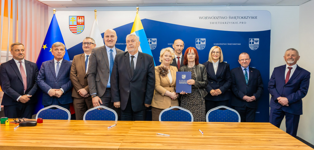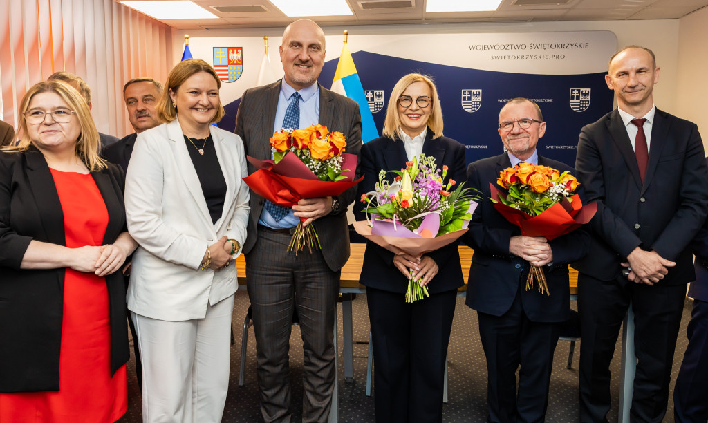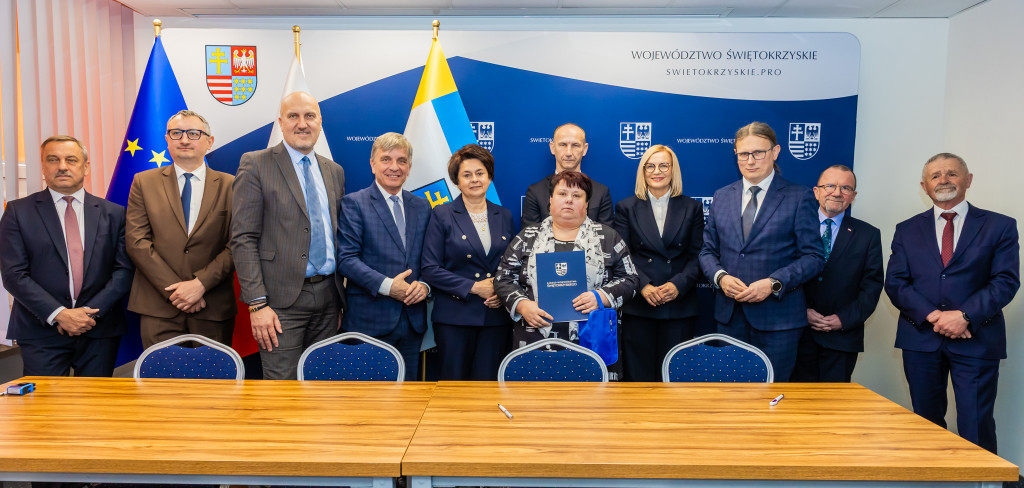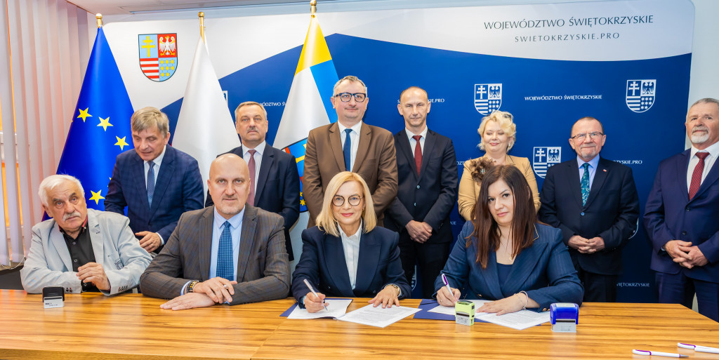 Marszałek Renata Janik, wicemarszałkowie Grzegorz Socha i Marek Bogusławski podpisali dziś 19 umów w ramach programu Fundusze Europejskie dla Świętokrzyskiego 2021–2027 o łącznej wartości dofinansowania 25 mln 272 tys. zł. Środki w ramach Europejskiego Funduszu Rozwoju Regionalnego zostały rozdysponowane w dwóch kluczowych obszarach: rozwoju lokalnym kierowanym przez społeczność oraz rozwoju miast i miejskich obszarów funkcjonalnych (ZIT). W podpisaniu umów uczestniczyli także członek Zarządu Województwa Świętokrzyskiego Andrzej Pruś, wiceprzewodniczący Sejmiku Województwa Świętokrzyskiego Marek Strzała, oraz radni Sejmiku Małgorzata Krzywda, Grzegorz Cepil, Kazimierz Mądzik oraz Sławomir Gierada.