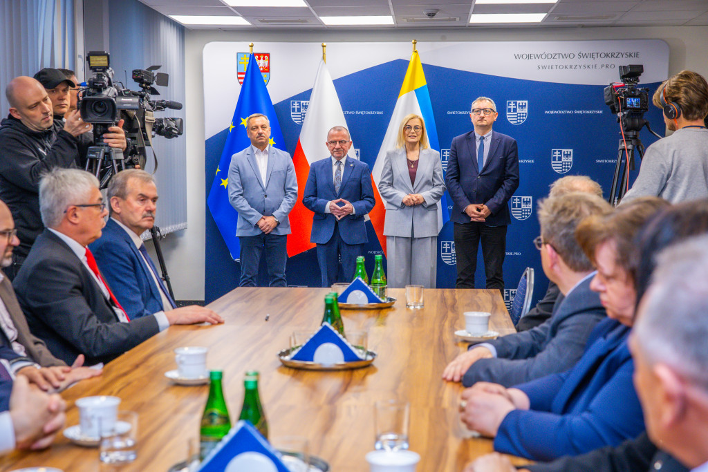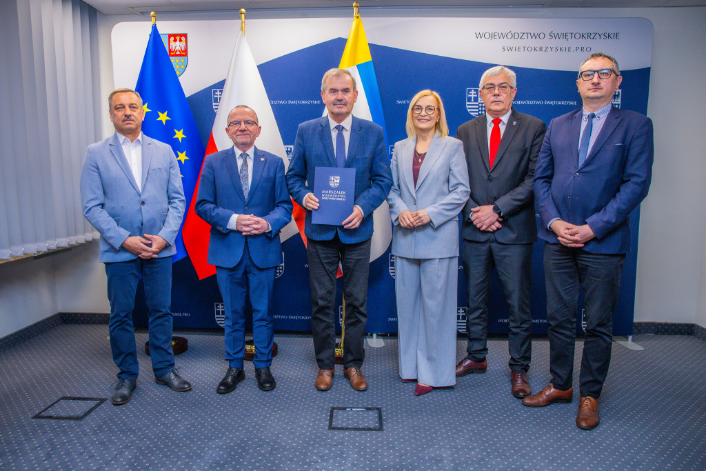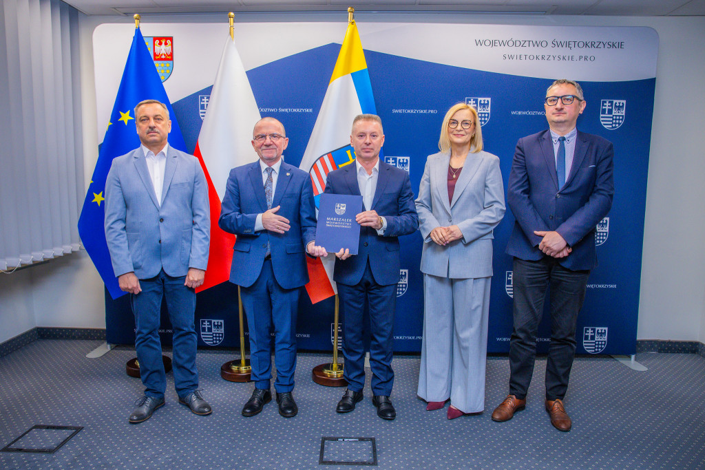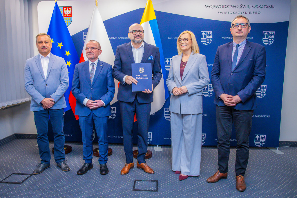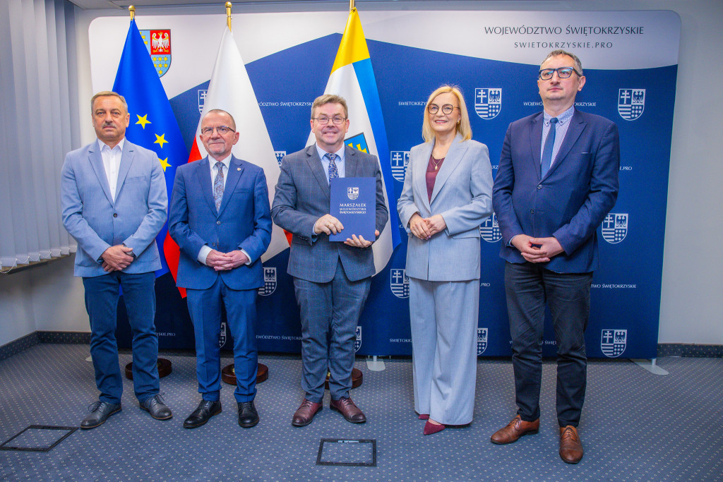 Marszałek Renata Janik, wicemarszałek Marek Bogusławski, wiceprzewodniczący Sejmiku Marek Strzała oraz radny Sejmiku i przewodniczący Komisji Rolnictwa i Ochrony Środowiska Grzegorz Cepil przekazali umowy na dofinansowanie robót budowlanych w obiektach służących rehabilitacji osób z niepełnosprawnościami. Dzięki kwocie ponad 4,3 mln zł pochodzącej ze środków PFRON, w całym regionie zrealizowanych zostanie 15 inwestycji, które realnie zwiększą dostępność infrastruktury i zniosą bariery architektoniczne ograniczające osoby z niepełnosprawnościami. W wydarzeniu uczestniczyli także dyrektorzy Regionalnego Ośrodka Polityki Społecznej Urzędu Marszałkowskiego – dyrektor Elżbieta Korus oraz jej zastępca Arkadiusz Ślipikowski, a także Damian Gad – kierownik Oddziału Profilaktyki, Rehabilitacji i Współpracy z NGO w ROPS.