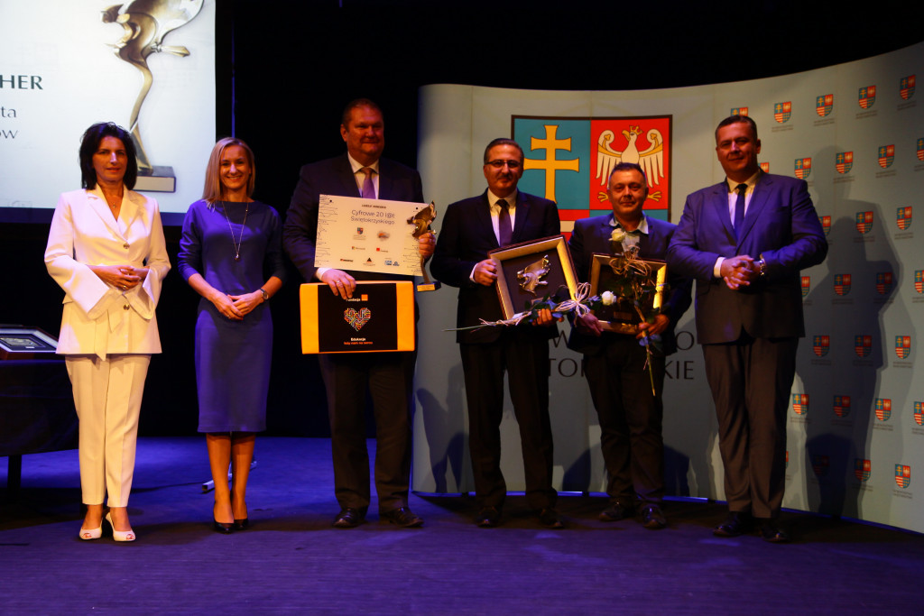 Podczas uroczystej gali w Teatrze im. S. Żeromskiego w Kielcach uhonorowano laureatów Konkursu Regionalnego „Cyfrowe 20 l@t Świętokrzyskiego”. Przedsięwzięcie organizowane przez Departament Społeczeństwa Informacyjnego Urzędu Marszałkowskiego Województwa Świętokrzyskiego, miało na celu wyróżnienie osób, projektów, instytucji publicznych i przedsiębiorstw, które w najbardziej aktywny sposób zaangażowały się w rozwój cyfrowy regionu w ciągu ostatnich dwudziestu lat. W wydarzeniu udział wzięła Agata Binkowska, członek Zarządu Województwa Świętokrzyskiego, Grzegorz Gałuszka, radny Sejmiku Województwa i Ewelina Gładki, dyrektor Departamentu Społeczeństwa Informacyjnego Urzędu Marszałkowskiego.