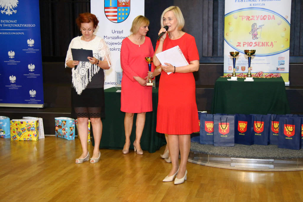 Wicemarszałek pogratulowała wszystkim startującym w konkursie dzieciom, odczytała werdykt konkursu i wręczyła nagrody. – Gratuluję Wam pięknych występów, piosenek oraz kreacji i z ogromną przyjemnością zapraszam Was po odbiór nagród – mówiła Renata Janik. Przedszkolaki od wicemarszałek otrzymały również karty do gry “Piotruś” i cukierki.