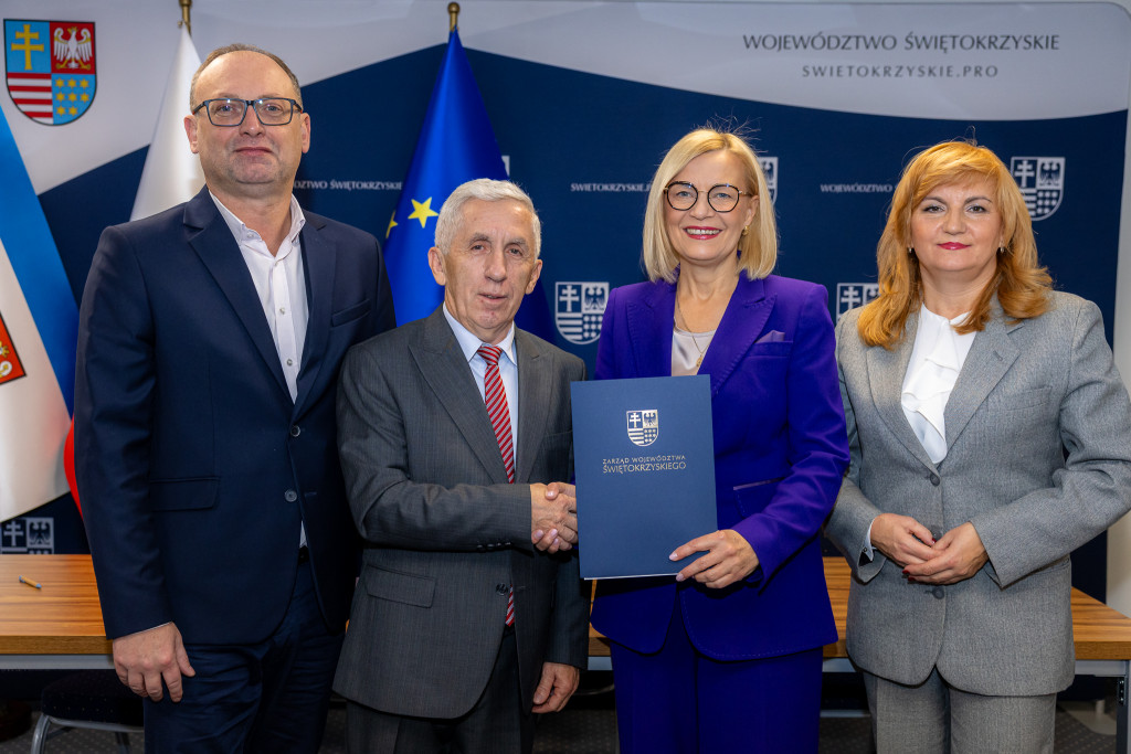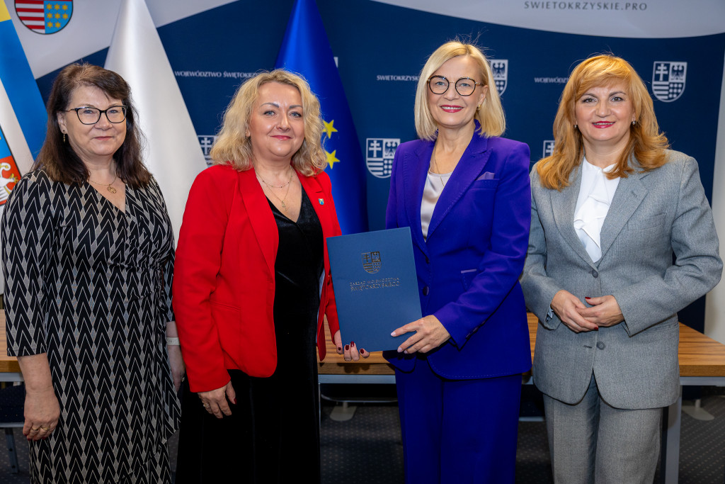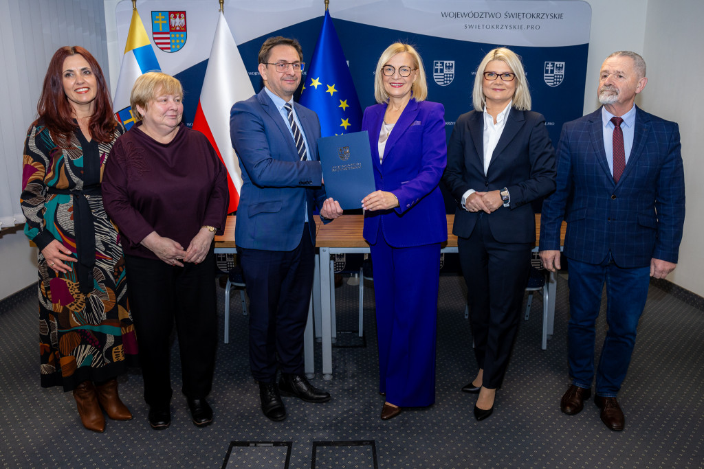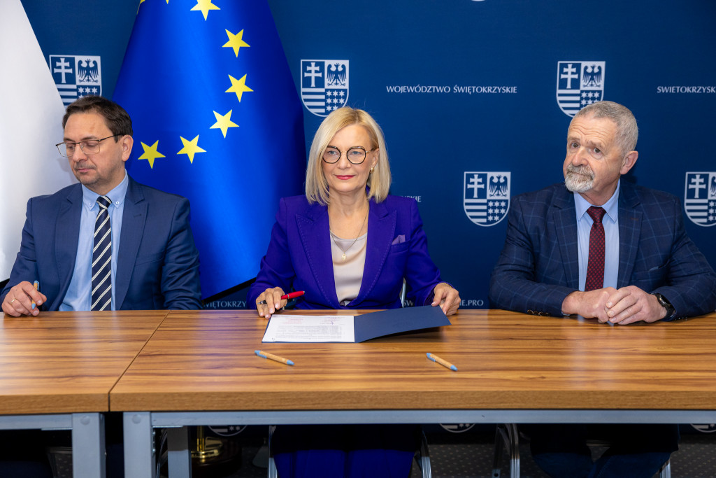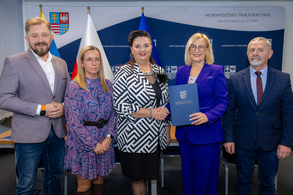 Marszałek Renata Janik podpisała dzisiaj umowy na dofinansowanie z programu „Fundusze Europejskie dla Świętokrzyskiego 2021-2027” 6 projektów, które dotyczą tworzenia Centrów Usług Społecznych i prowadzenia ich działalności. Łączne dofinansowanie z UE do projektów to ponad 34,8 mln zł. Z pomocy Centrów skorzysta łącznie 3 660 osób. Placówki powstaną w sześciu gminach: Kazimierzy Wielkiej, Małogoszczu, Morawicy, Pińczowie, Piekoszowie, Skalbmierzu. Obecni byli również członek Zarządu Województwa Anita Koniusz i radny Sejmiku Województwa Kazimierz Mądzik oraz Katarzyna Kubicka dyrektor Departamentu Wdrażania Europejskiego Funduszu Społecznego Urzędu Marszałkowskiego Województwa Świętokrzyskiego w Kielcach.