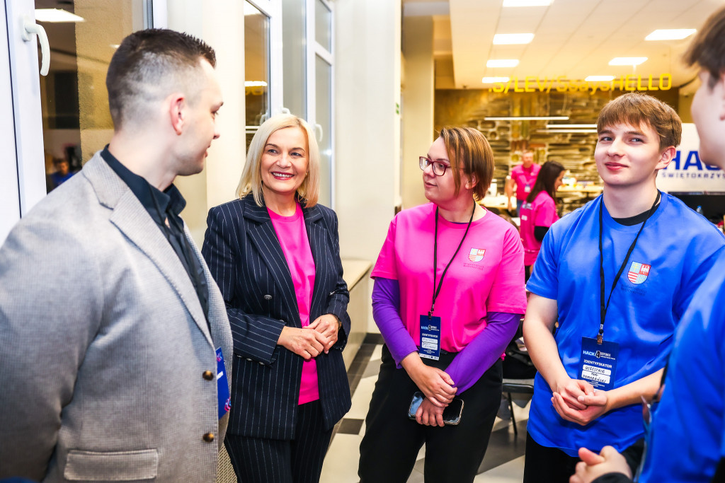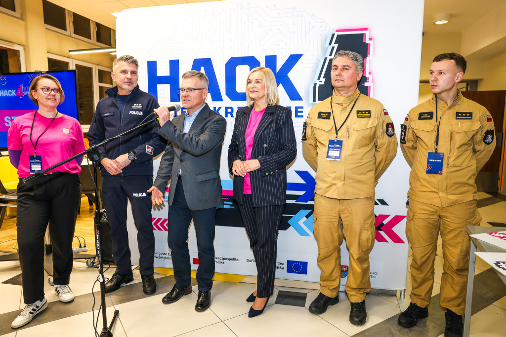 Marszałek województwa Renata Janik otworzyła dwudniowe zmagania świętokrzyskich studentów, czyli „Hack4Defence Świętokrzyskie”. Hackaton to konkurs, zorganizowany przez Urząd Marszałkowski Województwa Świętokrzyskiego, w którym 10 kilkuosobowych zespołów studentów rywalizuje w opracowaniu innowacyjnych aplikacji informatycznych, odpowiadających na zdefiniowane wyzwanie, ujawnione w chwili rozpoczęcia Konkursu. Celem inicjatywy jest rozwijanie kompetencji cyfrowych, kreatywności oraz pracy zespołowej w środowisku akademickim regionu. Hackaton odbywa się w Politechnice Świętokrzyskiej. Prace zespołów obserwowali także : zastępca dyrektora Departamentu Rozwoju Regionalnego Joanna Rudawska, prof. dr hab. Artur Maciąg Prorektor ds. Studenckich i Dydaktyki, Komendant Wojewódzki Policji w Kielcach insp. Zbigniew Nowak, st. bryg. Marcin Nyga i kpt. Kamil Jurkowski z Komendy Wojewódzkiej Państwowej Straży Pożarnej w Kielcach.