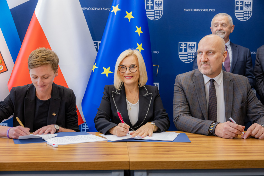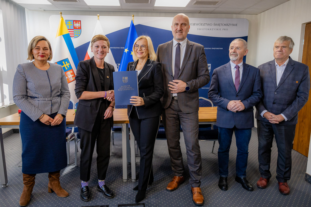 Marszałek województwa Renata Janik i wicemarszałek Grzegorz Socha podpisali z Miastem Kielce umowę na dofinansowanie realizacji jednej z największych inwestycji, związanych z rozwojem biznesu w regionie – budową Inkubatora California w Kielcach w ramach rozbudowy infrastruktury i oferty Kieleckiego Parku Technologicznego. Przedsięwzięcie otrzyma ponad 62 mln zł wsparcia z programu Fundusze Europejskie dla Świętokrzyskiego 2021–2027. W spotkaniu wzięli udział wiceprzewodniczący Sejmiku Województwa Świętokrzyskiego Mieczysław Gębski i radny Sejmiku Kazimierz Mądzik.
