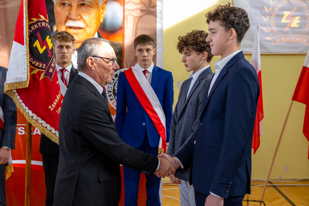 W Zespole Szkół Elektrycznych w Kielcach odbyły się dziś uroczyste obchody Dnia Patrona placówki – ostatniego prezydenta RP na uchodźstwie Ryszarda Kaczorowskiego, połączone z Dniem Edukacji Narodowej. Podczas spotkania ślubowanie złożyli przedstawiciele ponad 200 uczniów klas pierwszych. To wyjątkowe wydarzenie symbolicznie włączyło młodzież do społeczności Elektryka. W ramach akcji Narodowego Czytania fragmenty dział Jana Kochanowskiego przeczytała, biorąca udział w uroczystości, marszałek województwa Renata Janik. W wydarzeniu uczestniczył także senator Krzysztof Słoń.