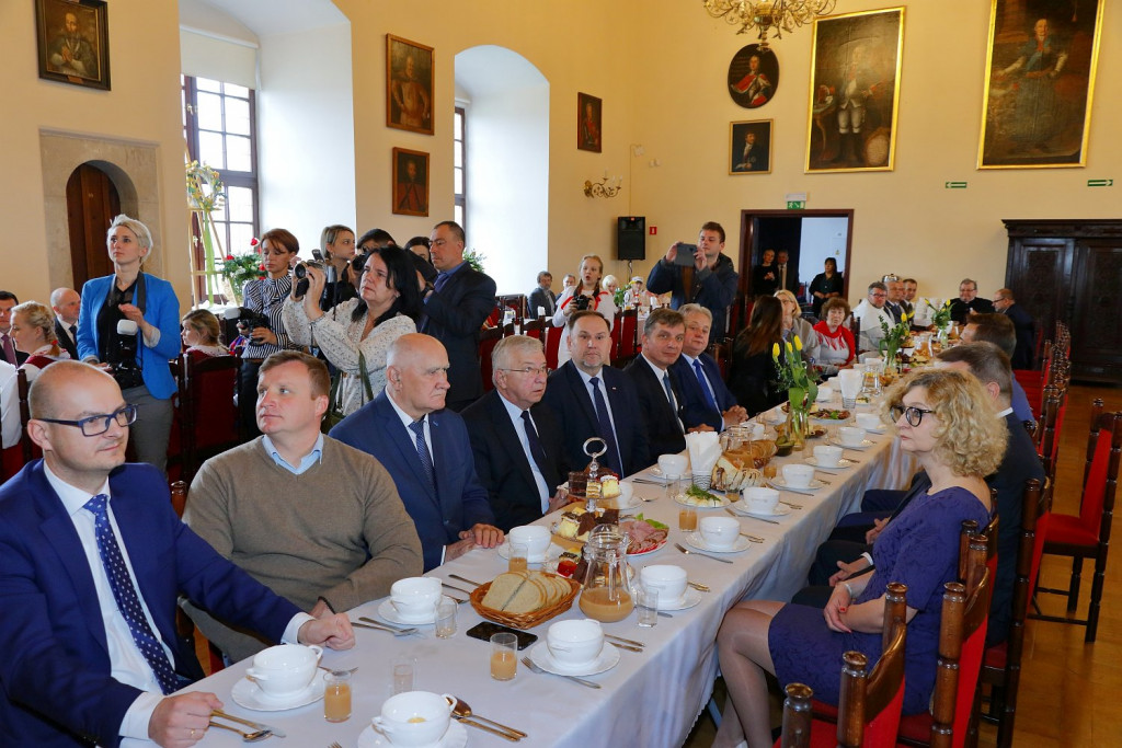 Członek Zarządu Województwa Marek Jońca poproszony został przez organizatorów, by w imieniu marszałka Andrzeja Bętkowskiego, który sprawował patronat honorowy nad śniadaniem, rozpoczął spotkanie wspólnie z burmistrzem Sandomierza, Marcinem Marcem i starostą sandomierskim Marcinem Piwnikiem.