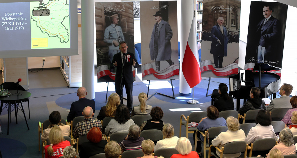 Uroczystość rozpoczęła się wystąpieniem Marka Jończyka z kieleckiej delegatury Instytutu Pamięci Narodowej. W pasjonującej opowieści przedstawił on złożone drogi Polaków do odzyskania wolności, ze szczególnym uwzględnieniem realiów XIX i początków XX wieku. Prelekcji towarzyszyła starannie przygotowana prezentacja multimedialna, która wzbogaciła historyczny komentarz i ułatwiła jego odbiór.