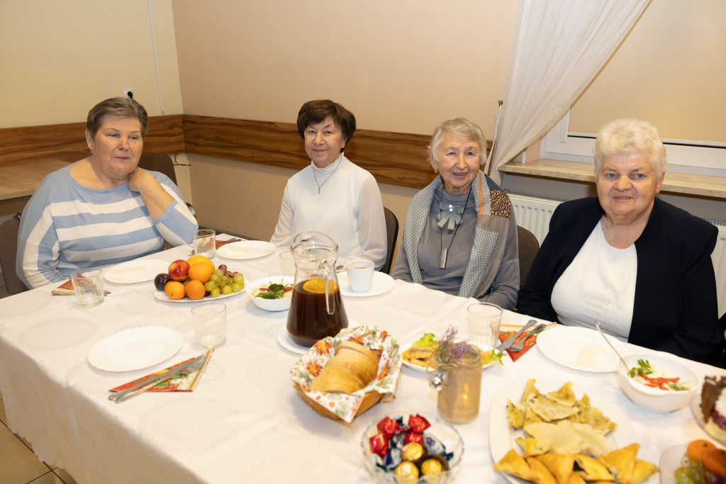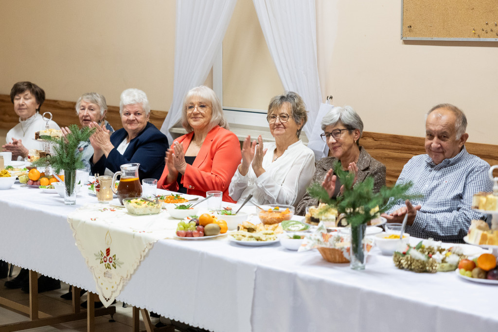 Seniorki z Klubu „Złote Lata” stanęły na wysokości zadania, przygotowując wyśmienity poczęstunek. Na stołach królowały tradycyjne potrawy i ciasta, a członkinie Klubu podkreślały, że wspólna praca nad świątecznymi specjałami jest dla nich jedną z najcenniejszych bożonarodzeniowych tradycji.