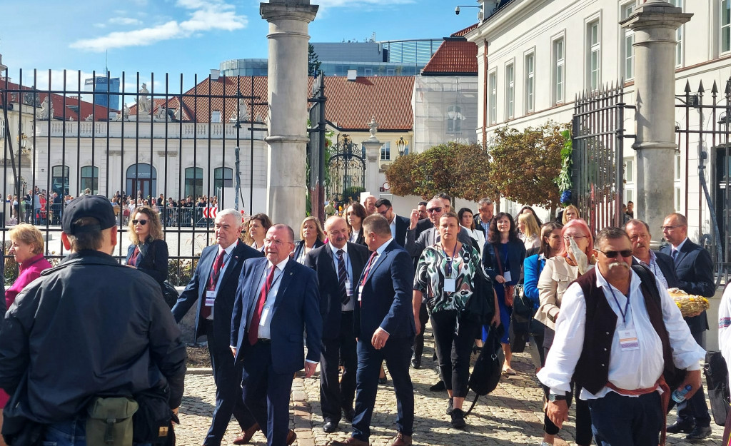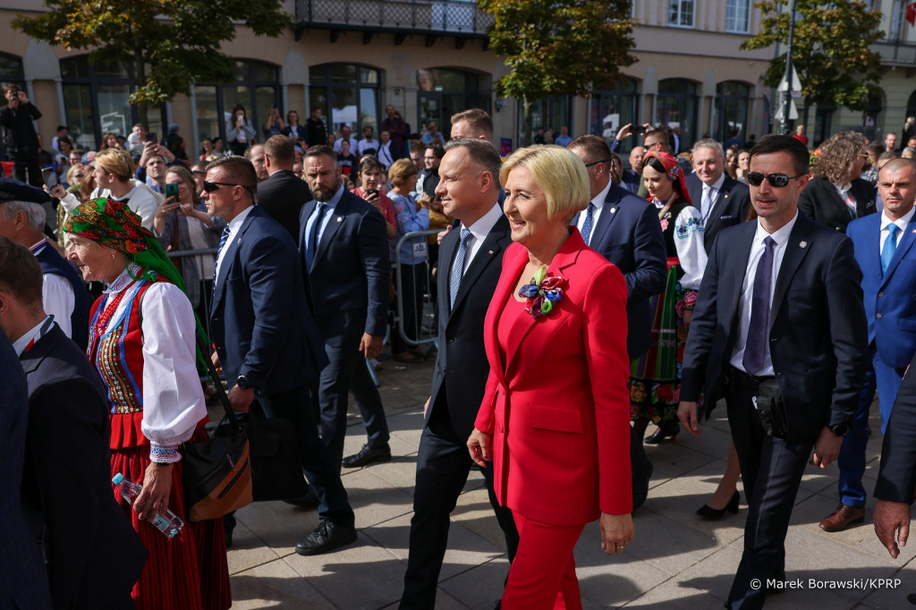 Na dziedzińcu Pałacu Prezydenckiego w Warszawie, w niedzielę 24 września 2023 r. odbyły się Dożynki Prezydenckie z udziałem Prezydenta Rzeczypospolitej Polskiej Andrzeja Dudy oraz Pierwszej Damy Rzeczypospolitej Polskiej Agaty Kornhauser-Dudy. W uroczystościach wzięli udział marszałek Andrzej Bętkowski, wicemarszałek Marek Bogusławski, radny Sejmiku Artur Konarski, a także Sławomir Neugebauer, dyrektor Departamentu Rolnictwa i Rozwoju Obszarów Wiejskich Urzędu Marszałkowskiego Województwa Świętokrzyskiego wraz z pracownikami departamentu.