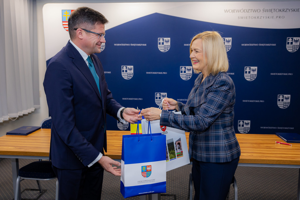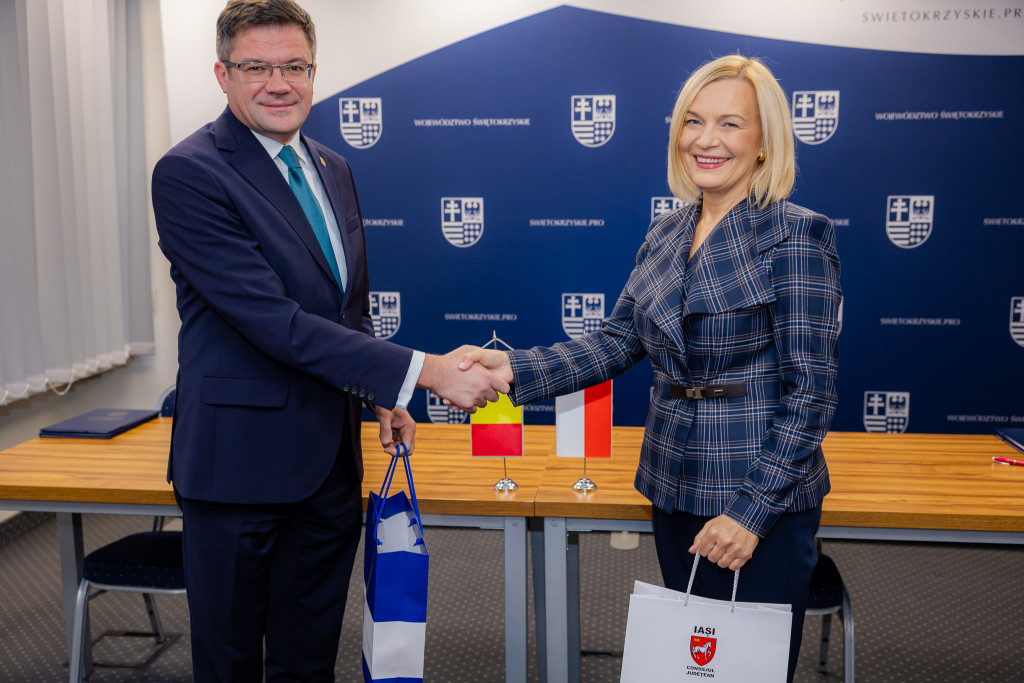 Marszałek Województwa Świętokrzyskiego Renata Janik oraz Prezydent Regionu Iași Costel Alexe uroczyście podpisali dziś umowę o współpracy, która otwiera zupełnie nowy rozdział w relacjach obu regionów. W wydarzeniu uczestniczyli  członek Zarządu Województwa Świętokrzyskiego Anita Koniusz i wiceprzewodniczący Sejmiku Województwa Świętokrzyskiego Mieczysław Gębski.