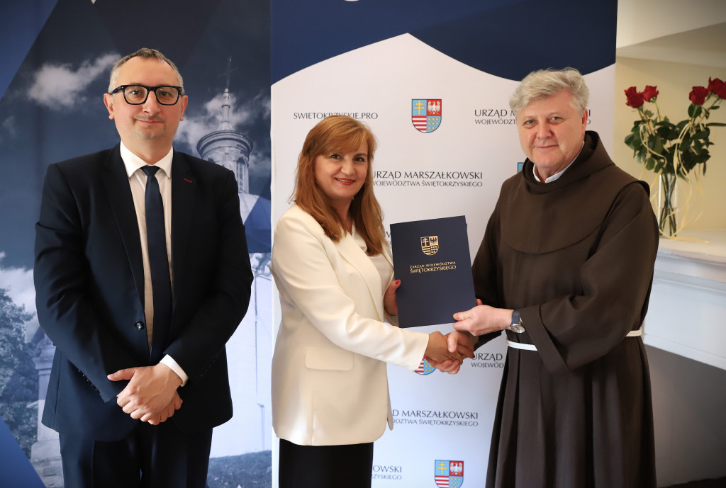Rewitalizacja zabytkowej synagogi w Działoszycach, remont fasady głównej kościoła OO. Franciszkanów w Pińczowie czy odrestaurowanie kościoła parafialnego p.w. Św. Wawrzyńca w Kluczewsku – to tylko część inwestycji, które zostaną wykonane dzięki funduszom z budżetu samorządu województwa. Dziś w Pińczowskim Samorządowym Centrum Kultury w Pińczowie uroczyście podpisane zostały kolejne umowy na prace konserwatorskie, restauratorskie i roboty budowlane przy świętokrzyskich zabytkach. W wydarzeniu uczestniczyli członek Zarządu Województwa Anita Koniusz oraz radny sejmiku Województwa Świętokrzyskiego Grzegorz Cepil. Z budżetu Województwa Świętokrzyskiego na działania w zakresie ochrony i zachowania obiektów zabytkowych przeznaczone zostało w tym roku 800 tysięcy złotych.