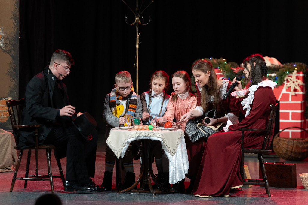 Amatorska grupa teatralna działająca przy parafii św. Michała Archanioła w Daleszycach, pod kierunkiem reżyser Moniki Śliwińskiej-Szostak, pokazała proces przemiany bohatera – Ebenezera Scrooge’a oraz to, jak empatia i życzliwość mogą zmienić relacje międzyludzkie.