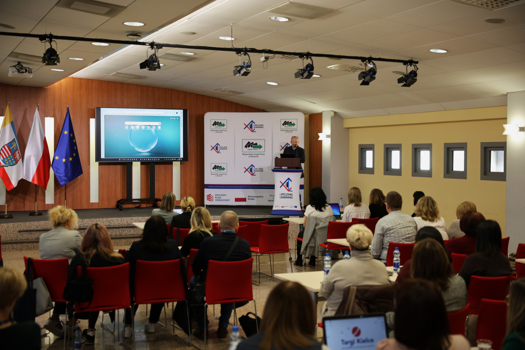Seminarium było częścią projektu Wojewódzkiego Urzędu Pracy w Kielcach „Zbudowanie systemu koordynacji i monitorowania regionalnych działań na rzecz kształcenia zawodowego, szkolnictwa wyższego oraz uczenia się przez całe życie”. Jego celem jest wsparcie rozwoju kompetencji doradców oraz wdrażanie innowacyjnych narzędzi w pracy z młodzieżą i osobami dorosłymi. Uczestnicy wydarzenia mieli okazję poszerzyć wiedzę oraz zdobyć praktyczne umiejętności, biorąc udział w warsztatach prowadzonych przez Tomasza Magnowskiego – doradcę zawodowego, nauczyciela, trenera biznesu i certyfikowanego Microsoft Innovative Educator Expert.