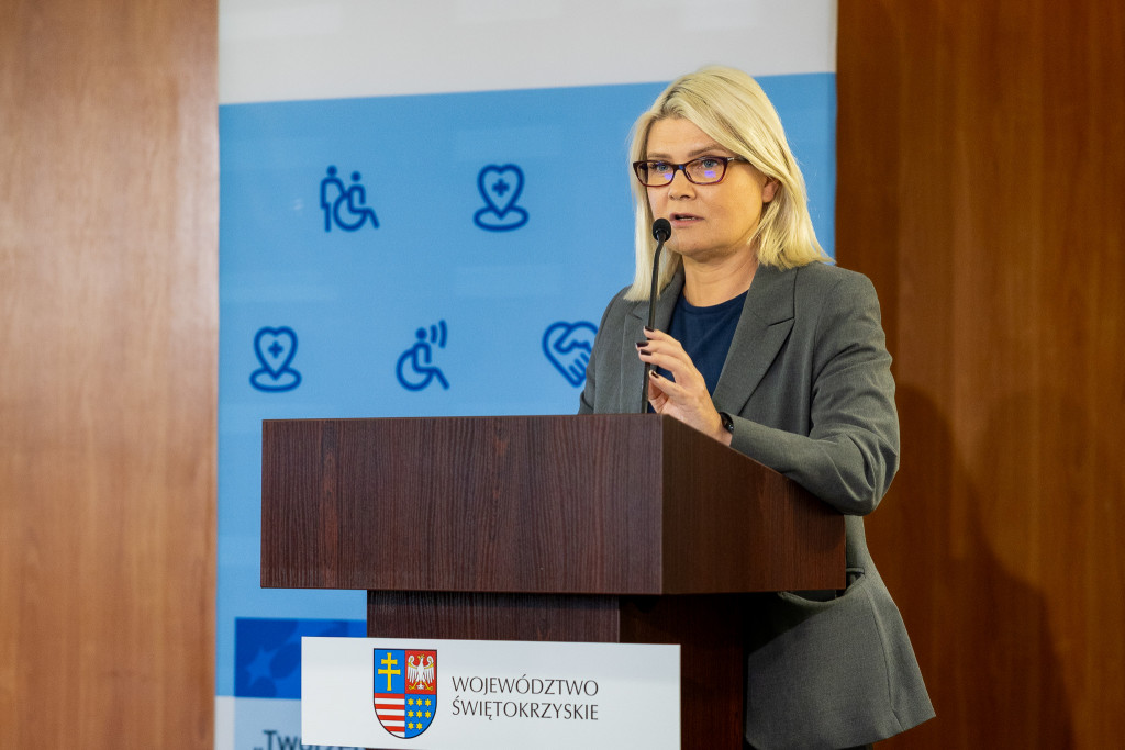 Konferencję rozpoczęła pomysłodawczyni przedsięwzięcia – marszałek Renata Janik, która nazwała projekt „olbrzymim”, wskazując, że jego liderem jest Regionalny Ośrodek Polityki Społecznej, a partnerami Miasto Kielce i 19 gmin powiatu kieleckiego.