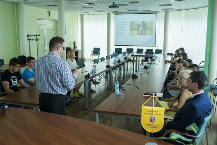 Gośćmi spotkania, które odbyło się w Sali konferencyjnej Urzędu Gminy Sitkówka Nowiny byli przewodnicząca Rady Gminy Zofia Duchniak i Wójt Sebastian Nowaczkiewicz. Uczniowie pobliskiego gimnazjum przybyli pod opieką nauczycielki Hanny Krzysztofek.