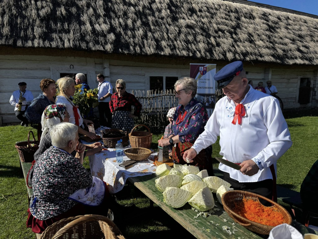 Niedzielne wydarzenie w Parku Etnograficznym w Tokarni przeniosło nas w klimat dawnej wsi kieleckiej – pełen barw, smaków i tradycji. Mogliśmy podziwiać pokazy kiszenia kapusty w wykonaniu Wincentowian, darcia pierza i przędzenia z Korytniczanami, a także wziąć udział w warsztatach plastyki obrzędowej, wyplatania jesiennych wianków oraz wycinankarstwa.