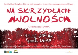 Z kolei w Buskim Samorządowym Centrum Kultury odbędzie się koncert pt. „Na skrzydłach wolności”. Na scenie najpiękniejsze piosenki patriotyczne wykona zespół Winyl. Początek o godz. 16.00.