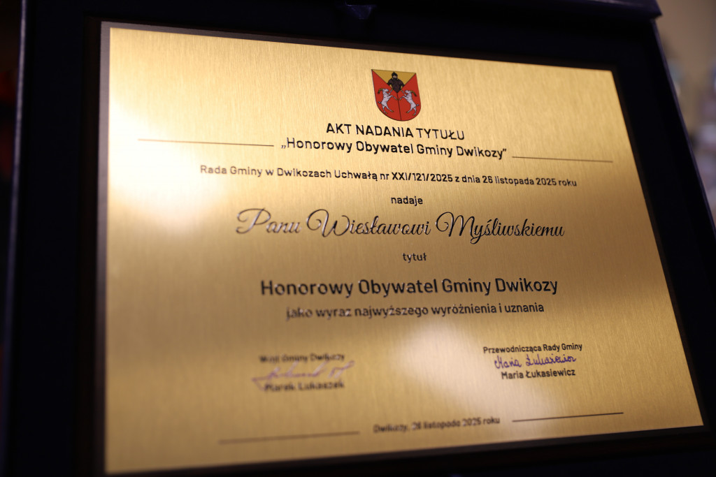 Wiesław Myśliwski z tytułem Honorowego Obywatela Dwikóz