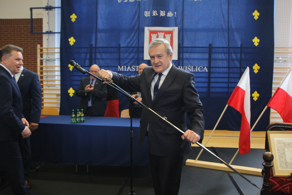 Wraz z Przewodniczącym Rady Miejskiej Jackiem Gocykiem wręczył wicepremierowi Akt Nadania Honorowego Obywatelstwa Miasta Wiślica, symboliczny klucz do bram miasta oraz szablę kawaleryjską, żeby mu przypominała o wielkim szacunku oraz serdeczności wiśliczan.
