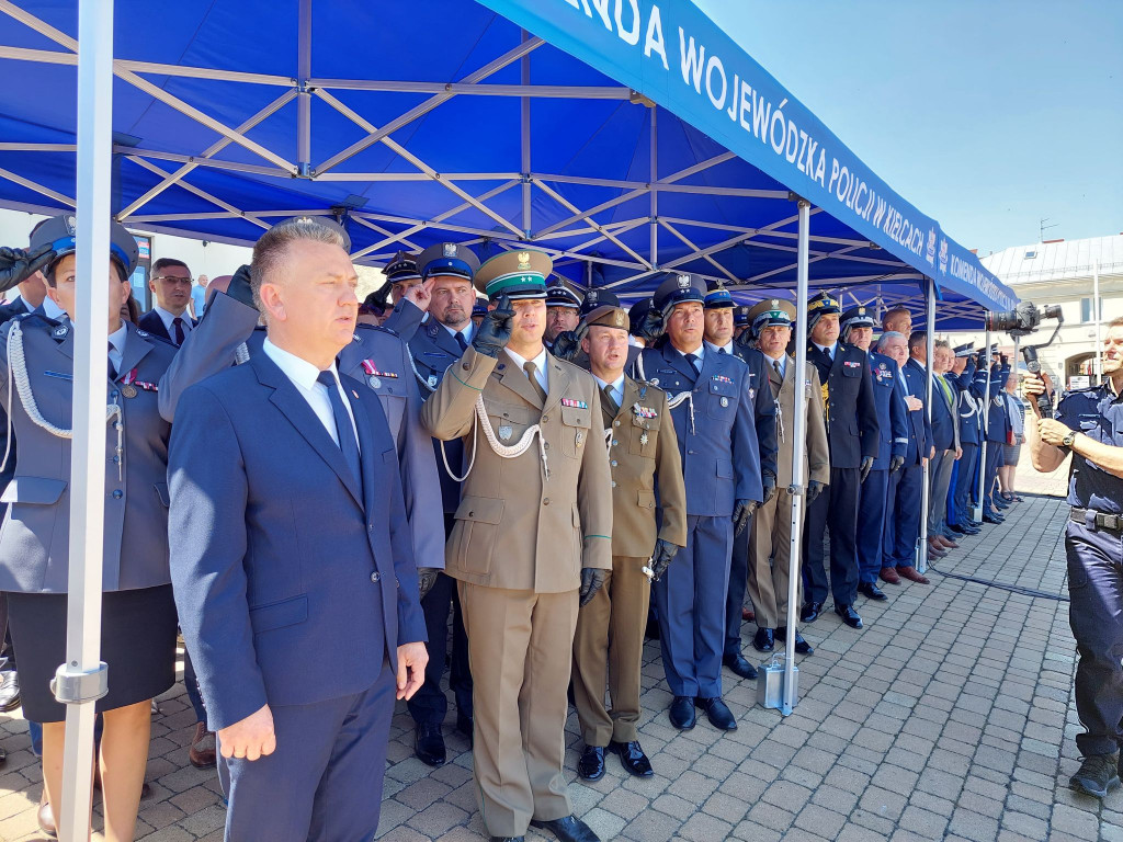 Na chęcińskim Rynku odbyły się wojewódzkie obchody Święta Policji, które jest okazją do wyrażenia słów uznania dla funkcjonariuszy. W uroczystościach wziął udział marszałek Andrzej Bętkowski.