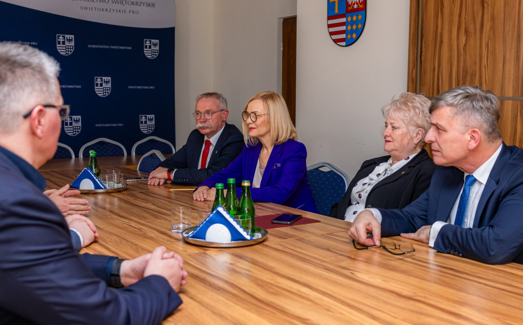 Marszałek województwa Renata Janik i członek Zarządu Województwa Andrzej Pruś spotkali się z wójtem Masłowa Tomaszem Lato, przedstawicielami samorządu gminy i mieszkańcami, by porozmawiać o planowanych inwestycjach drogowych i niezbędnych remontach odcinków dróg na terenie gminy. W rozmowie uczestniczył Rafał Kosiński dyrektor Departamentu Nieruchomości, Geodezji i Planowania Przestrzennego Urzędu Marszałkowskiego Województwa Świętokrzyskiego.