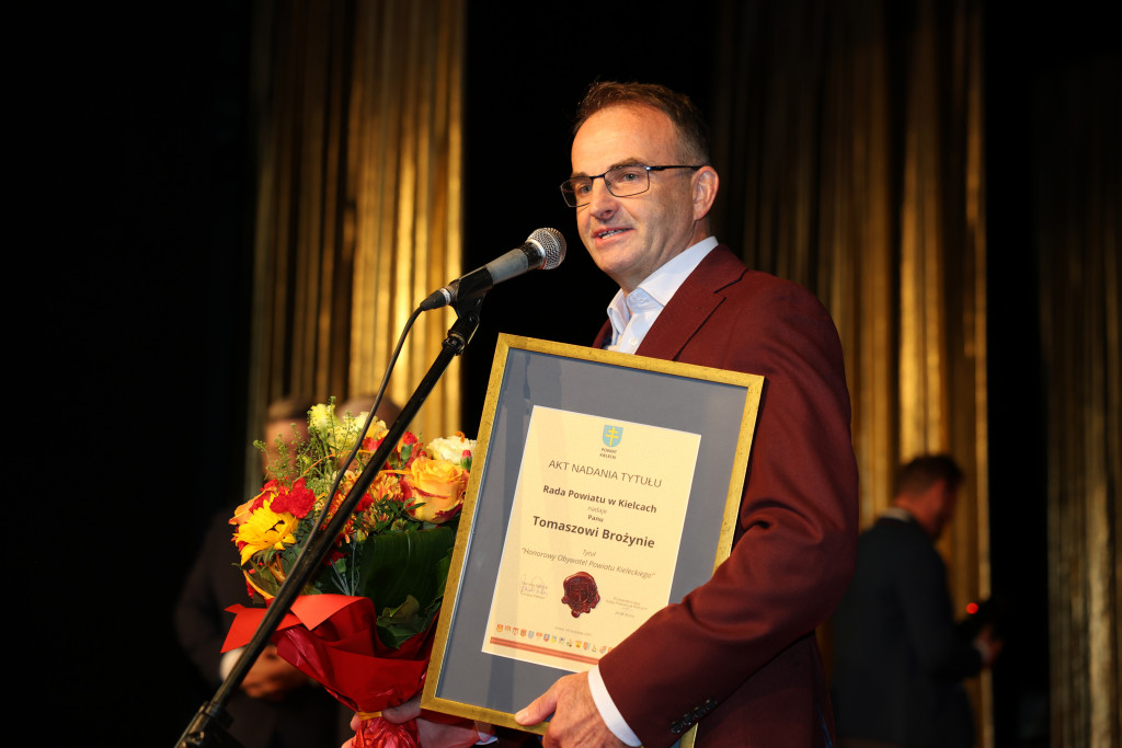 Na podstawie uchwały, podjętej przez Radę Powiatu w Kielcach, Honorowym Obywatelem Powiatu Kieleckiego został Tomasz Brożyna, utytułowany kolarz i trener kolarstwa, olimpijczyk i wielokrotny Mistrz Polski w tej dyscyplinie, wychowawca pokoleń młodych adeptów sportu.