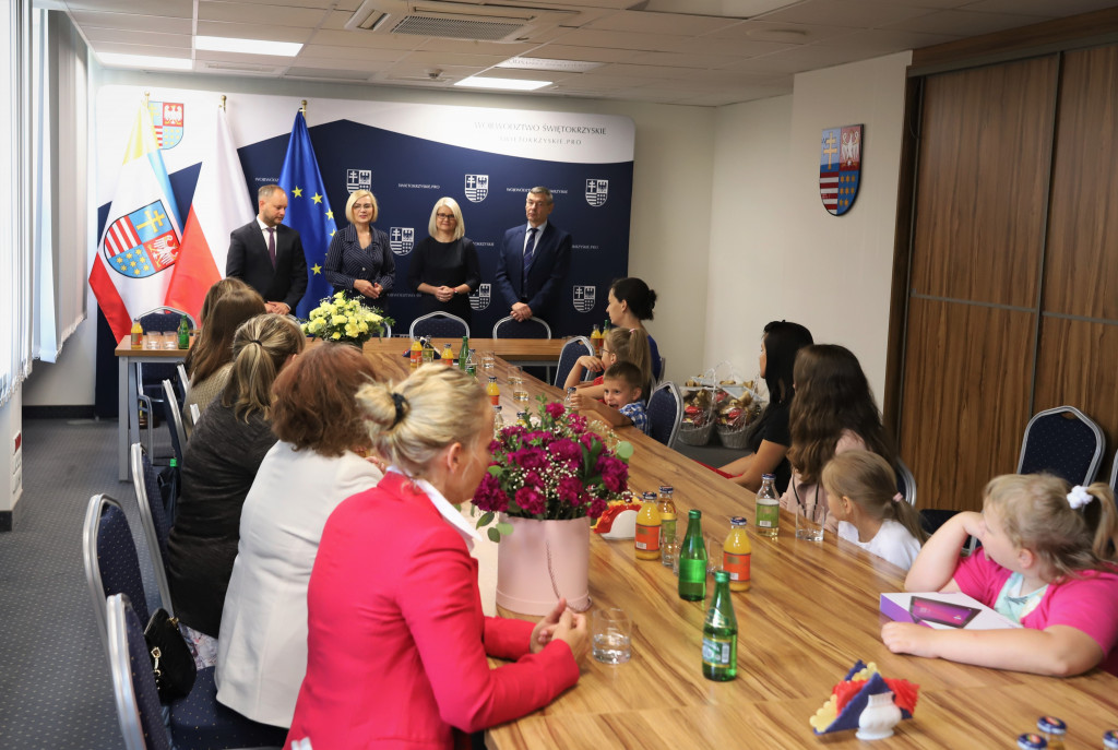 Dziś z wicemarszałek województwa świętokrzyskiego Renatą Janik, dyrektor Departamentu Wdrażania Europejskiego Funduszu Społecznego Katarzyną Kubicka oraz jej zastępcą Arturem Potaczałą spotkali się realizatorzy projektu oraz ci, którzy z niego korzystają: burmistrz Działoszyc Stanisław Porada oraz grupa dzieci z przedszkola z Działoszyc wraz z pedagogami.
