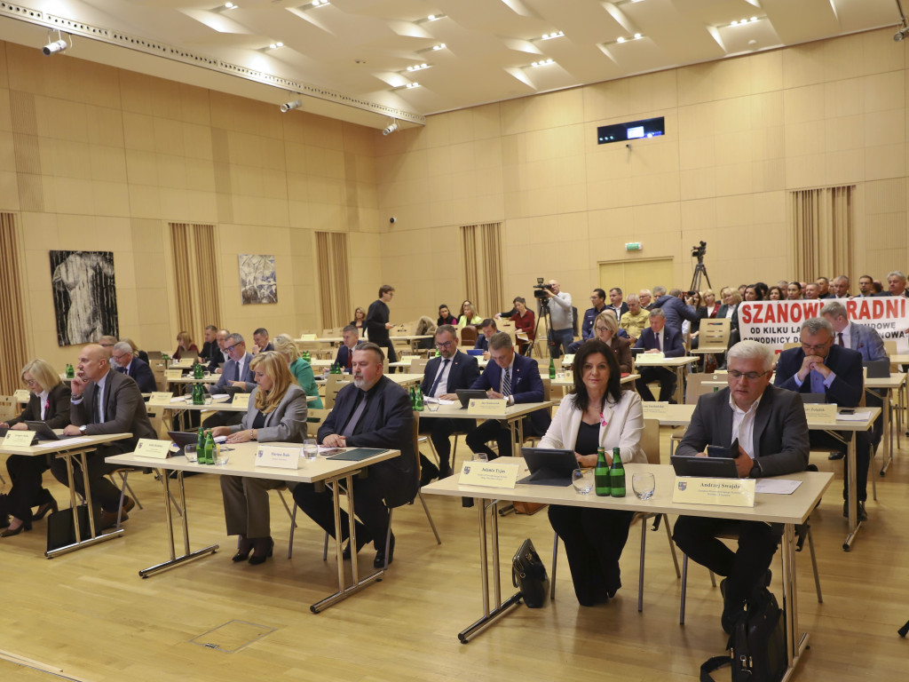 W poniedziałek 27 października br. w siedzibie Filharmonii Świętokrzyskiej odbyła się XX sesja Sejmiku Województwa Świętokrzyskiego. Obrady, które prowadził przewodniczący Andrzej Bętkowski, zaowocowały przyjęciem szeregu istotnych uchwał i stanowisk, koncentrujących się na zdrowiu, infrastrukturze, rolnictwie oraz współpracy regionalnej i kulturze. Radni Sejmiku przegłosowali m.in. uchwałę w sprawie apelu do Rządu Rzeczpospolitej Polski dotyczącego zapłaty za nadwykonanie świadczeń zdrowotnych zrealizowanych na rzecz pacjentów przez podmioty lecznicze nadzorowane przez Województwo Świętokrzyskie.