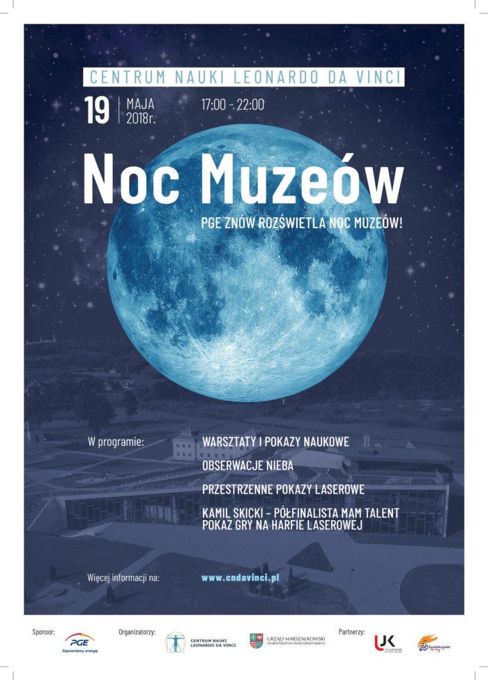 Naukowe doświadczenia, obserwacje astronomiczne, a na deser koncert muzyki na harfie laserowej i pokaz laserów przestrzennych. Kolejna magiczna Noc Muzeów czeka na Was w Centrum Nauki Leonardo da Vinci. Wydarzenie zapowiada się wyjątkowo atrakcyjnie. W sobotę, 19 maja, w godzinach 17 a 22, Centrum Nauki Leonardo da Vinci w Podzamczu czeka na pasjonatów nauki i dobrej zabawy. Warsztaty naukowe zostaną poprowadzone przez wykwalifikowaną kadrę pracowników Wydziału Matematyczno – Przyrodniczego Uniwersytetu Jana Kochanowskiego w Kielcach. Pracownicy Instytut Chemii UJK pokażą „Niezwykłą chemię niezwykłych rzeczy”, w tym kapuścianą tęczę, chemicznego kameleona, lawową lampę, kolorowy wir, lusterko w probówce czy zegar jodowy. Po zmroku czeka nas wyjątkowa atrakcja – pokaz gry na harfie laserowej. Wykonawcą będzie Kamil Skicki „Magnus”, zawodowy muzyk i finalista telewizyjnego show „Mam talent”. Więcej informacji
